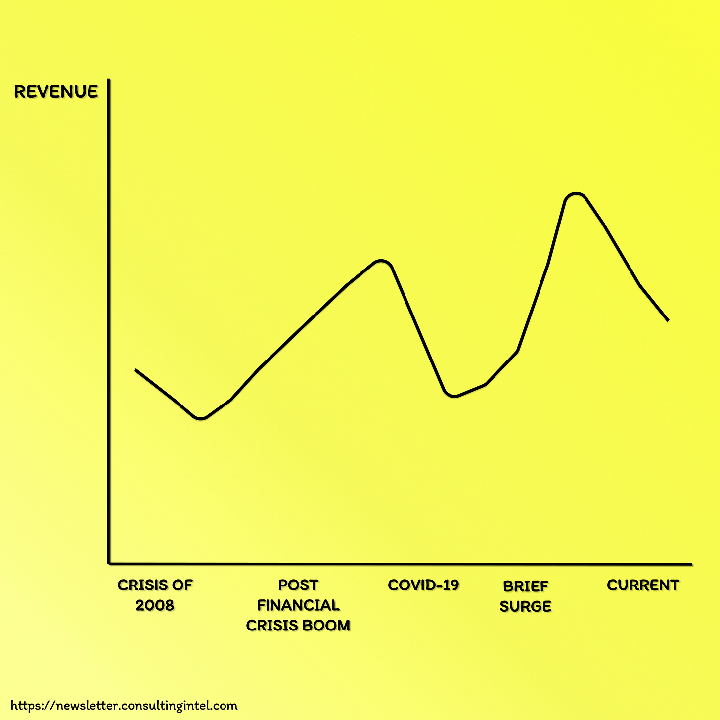 Like any industry, consulting has its good and bad times: it is a cyclical business, and once you have been through a few of these cycles you start recognizing them.