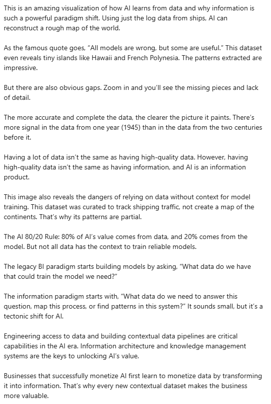 Information is data given context relative to a decision. You can have exquisite accuracy and still be wrong for the task, like using ship logs to draw mountain ranges.