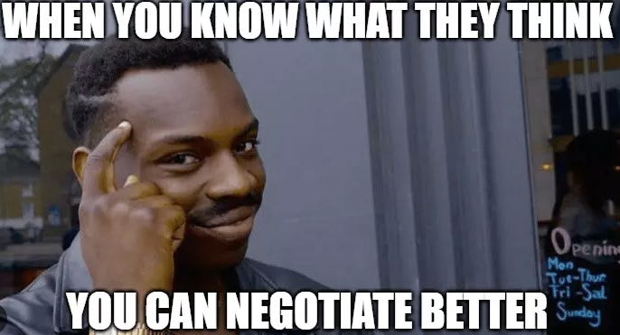 (If you are interested, Chris Voss covers many negotiation techniques in his book “Never split the difference”. Chris can come across as a bit “intense” in his way to present concepts, but he definitely knows what he’s talking about).